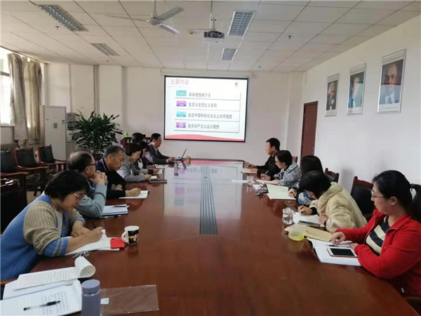 本次党课是思政课第一党支部贯彻落实“不忘初心、牢记使命”主题教育工作会议精神的活动之一。