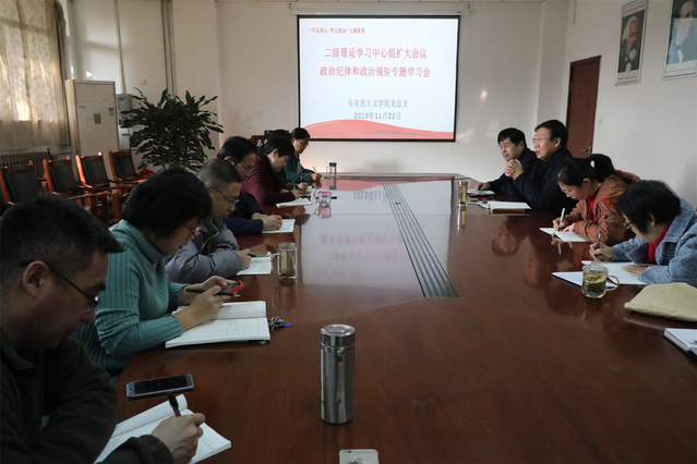 11月22日,腐漫画 党总支召开二级理论学习中心组(扩大)会议,专题学习政治纪律和政治规矩,会议由党总支书记程乐森主持,腐漫画 全体党员参加。