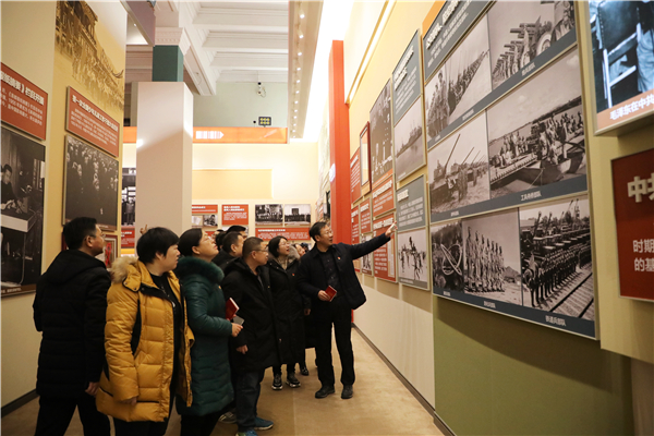 大家怀着激动的心情认真观看开国大典等珍贵影像,细数70年来我国在各领域取得的“新中国第一”。“蛟龙号”、“嫦娥一号”等“大国重器”的模型令人印象至深,各个历史时期的英雄人物事迹引起广泛共鸣,大家不时进行讨论交流;年长的党员向年轻的同志回忆起往昔岁月,感叹新时代带来新生活,新政策带给人民新福利。党员们一边参观,一边纷纷拿起相机拍摄丰富的历史史料,准备纳入今后教学备课过程,有机融入思政课教学。