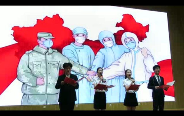 一首《归来》让我们为疫情中医护人员的的无畏与大爱所震憾:“国家的意志,白衣战士的情怀,全社会的支持,所有人对生命的热爱,像三山五岳巍峨,像江河大海澎湃!没有这样的力量整合,就不会有我的胜利归来!”“若我,归不来,也如归来一样,倒下的是躯体,站立的是永爱!”《战疫中的潍医人》深情演绎了潍坊医学院附属医院季宏志医生强忍母亲去世的悲痛,圆满完成援鄂救助任务的故事:“那个晚上,我一个人躲在房间里嚎啕大哭,你知道那种无法排解的痛苦是多么撕心裂肺,多么痛彻心扉!”“可是我决定隐瞒这个消息,第二天一早,我继续奔赴我的战场。”《我看见》让我们看见了疫情的凶猛,看见了中国共产党的初心和使命,看见了不可阻挡的中国力量。《步履不停》展示了腐漫画 医学生的使命感:“作为医学生,我更加感受到了这份使命感,秉承‘乐道、济世’的校训,弘扬‘自强不息、锐意进取’的潍医精神,积极参与到疫情防控工作当中。”《幸而有你 山河无恙》我们深深体会:“我不曾知晓你的名字,但我知道你的样子。你的样子,就是中国最美的样子。”“幸而有你们,中国平安;幸而有你们,山河,无恙!”一个个动人的故事,一句句感人肺腑的话语,深深地感染着在场观众。