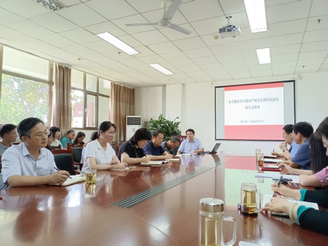 张士海教授,是国务院马克思主义理论学科评议组成员,山东大学杰出中青年学者,曾荣获“全国高校思想政治理论课教师年度影响力人物”、“全国高校思想政治理论课教学标兵”称号,在党的建设研究方面有很深的学术造诣。张教授此次讲座的主题是《关于新时代中国共产党文化领导权建设的几点思考》,详细解读了四个方面的内容,即:为什么要加强文化领导权建设?加强文化领导权建设的目的是什么?怎样加强文化领导权建设?加强文化领导权建设建设的时代要求有哪些?整场讲座逻辑严密、思路清晰、观点鲜明,受到了教师们的一致好评,讲座结束后,与会教师与张士海教授进行了热烈的互动。