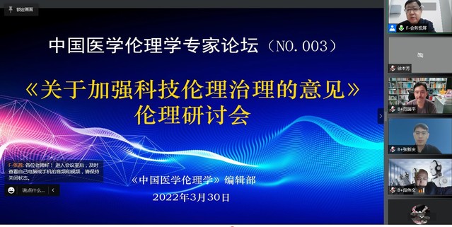 3月30日晚,由中国医学伦理学编辑部举办的“中国医学伦理学专家论坛----《关于加强科技伦理治理的意见》伦理研讨会”通过腾讯会议召开。会议贯彻落实中共中央办公厅、国务院办公厅近期印发的《关于加强科技伦理治理的意见》的精神,特别邀请了香港城市大学公共政策学系哲学教授范瑞平博士、北京协和医学院人文和社会科学学院教授张新庆博士、中国社科院哲学所科技哲学研究室主任段伟文研究员,围绕科技伦理治理,分别以“科技伦理原则需要具体研究才能进行指导”“科技伦理治理的基本原则及理念传播”“科技伦理治理:如何伦理先行”为题作了专题学术报告,对该意见进行了具体的政策解读。