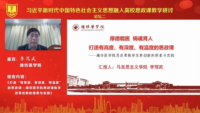 院长李笃武作了《打造“有高度、有深度、有温度”的思政课—潍坊医学院思政课教学改革创新的探索与实践》的主题报告,围绕如何打造“有高度、有深度、有温度”的思政课,结合学院近年来的思政育人实践,分享了腐漫画