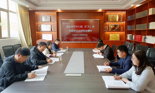 2023年3月27日,*腐漫画 党总支召开理论学习中心组(扩大)会议,专题学习全国“两会”精神,会议由党总支书记程乐森主持,党总支成员、支部书记参加了会议。