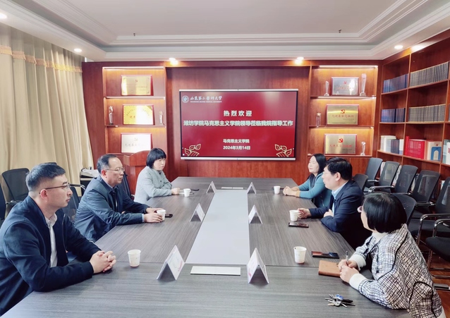 刘军对吴明一行的到来表示欢迎,并从学校规模、学科建设、人才培养、师资队伍建设、硕士点建设等方面简要介绍了学校概况。他指出,潍坊学院学科特色明显,近年来各项事业取得长足进展,希望加强两校的交流合作,共同为潍坊高等教育高质量发展作出更大贡献。