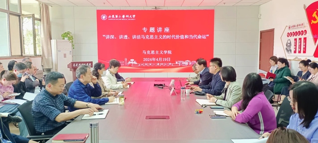 4月19日下午,*腐漫画 特邀中国海洋大学*腐漫画 党委副书记、副院长王付欣教授来院进行学术交流。王教授学术讲座的题目是《讲深、讲透、讲活马克思主义的时代价值和当代命运》,现场由*腐漫画 院长李笃武主持,学院全体教师参加。