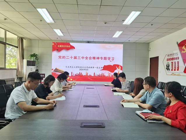 为深入学习贯彻党的二十届三中全会精神,确保党的创新理论同步推进,8月13日上午,思政课第一党支部开展学习贯彻党的二十届三中全会精神主题党日活动。活动由支部书记张菲菲主持,全体党员参加。
