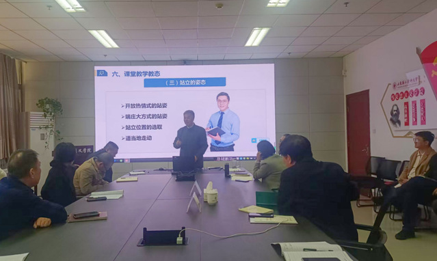 段文阁教授从“你所喜欢的一堂课、你所厌恶的一堂课、你印象最深的一堂课、你收获最大的一堂课”切入,引导教师思考思政课教学的优劣,从同行专家评价指标、教学对象评价指标、教学督导听课观测点三个角度,详细解读了课堂教学的评价指标。段教授结合大量生动案例,围绕备课、导入新课、板书、课堂教学PPT、课堂教学教态、课堂教学语言、课堂提问、突出重点与解决难点、课堂小结等九个领域,深刻剖析了课堂教学技术与要注意的问题。讲座结束后,教师们就日常教学中遇到的问题与段教授进行了互动交流。