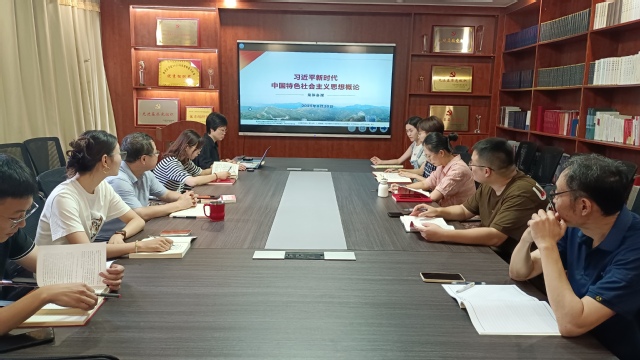 为进一步凝聚教学共识,提高思政课教育教学水平,8月30日,*腐漫画 习近平新时代中国特色社会主义思想教研室举行新学期首场集体备课会,承担《习近平新时代中国特色社会主义思想概论》课程教学任务的授课教师全员参加,学院副院长朱宏晋指导备课会。